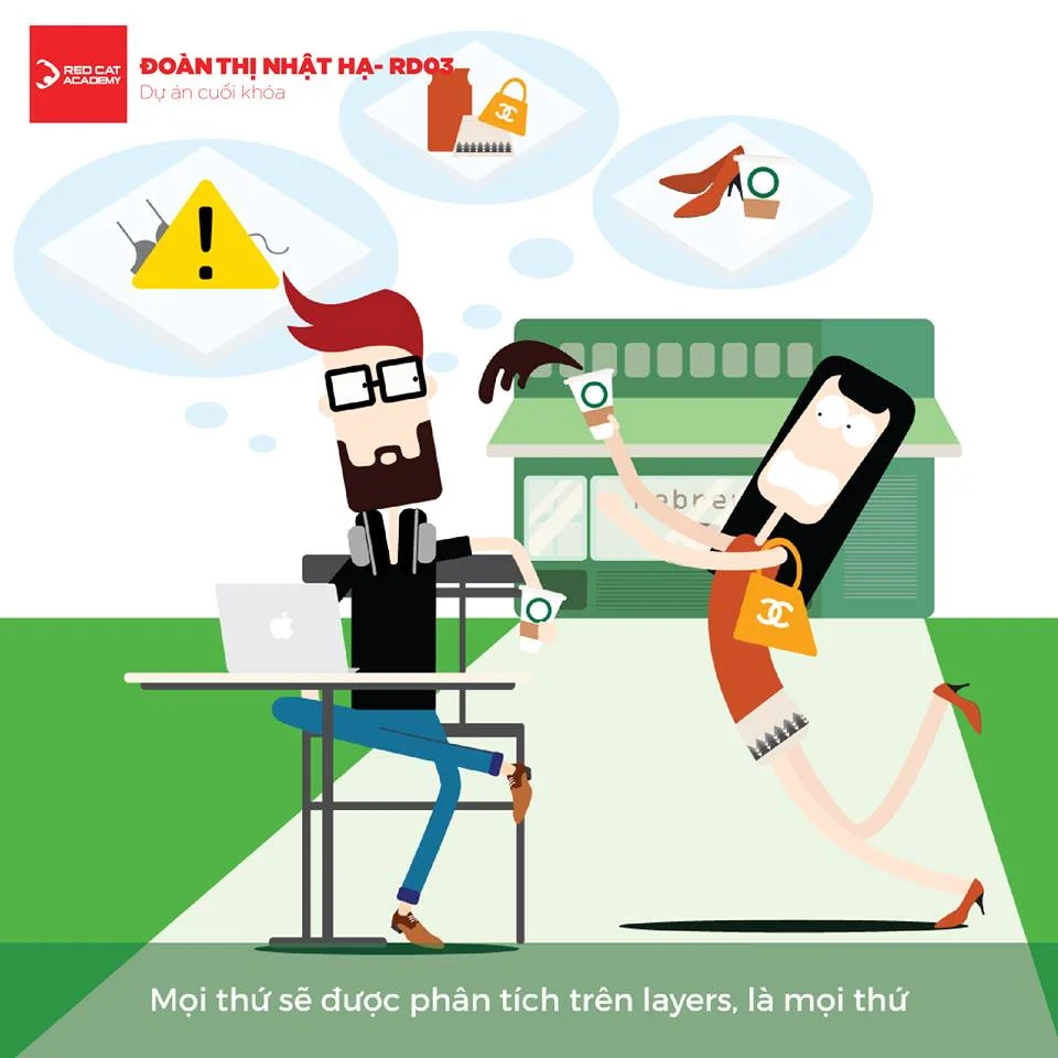 Designer là chủ đề mà bạn Đoàn Thị Nhật Hạ lớp Vẽ Tay RD03 chọn để thử thách bản thân. Với góc nhìn thú vị, hài hước dựa trên khía cạnh sự thật. Các sản phẩm của bạn đã thể hiện được gần như đầy đủ cuộc sống của một Designer yêu hình ảnh, tiếc là hơi ít đúng không